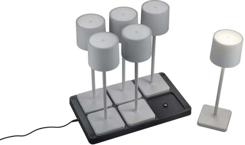 Akkumulátoros kültéri asztali lámpa, mely a tartozék USB-C kábellel tölthető. A lámpaernyő tetején található érintőkapcsolóval a lámpa színhőmérséklete 3 fokozatban állítható, fényereje 15-100% között változtatható. 1 db 2000 mAh Li-ion akkumulátorral működik, mely tartozéka a lámpának. Töltse fel a lámpát napközben, majd élvezze fényét egy esti beszélget