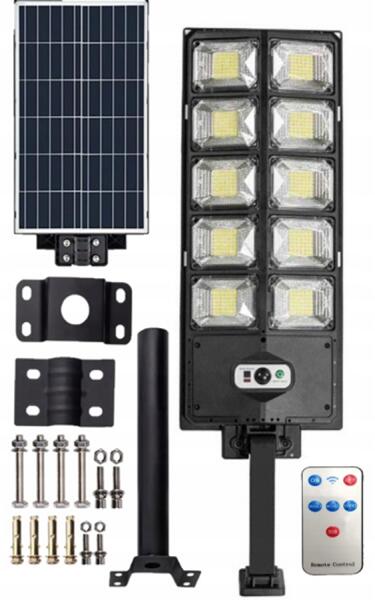Nagyméretű kültéri napelemes, időjárásálló, LED reflektor, 1000W, IP65, BP Teljesítmény: 1000W Mozgásérzékelő: IGEN Szürkületérzékelő: IGEN Távirányító: IGEN Távirányító hatótávolsága: 5 - 7 m Osztály: IP65 Élettartam: 50000 h Nyalábszög: 120° Világítási idő: több mint 8 óra Világos szín: 6000 - 7000 k, fehér, hideg Működési hőmérséklet: -30-60°C