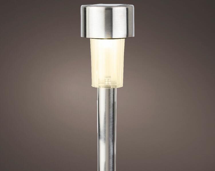 Solar stake light stainl steel leszúrható, napelemes kerti szolár lámpa A szolár lámpák napenergiával működnek, amelyet a beépített napkollektorok gyűjtenek és akkumulátorokban tárolnak. Ezáltal energiatakarékos és környezetbarát megoldást kínálnak, hiszen nem igényelnek hálózati áramot, így csökkentik a villanyszámlát és a szén-dioxid-kibocsátást. Könnyen tele