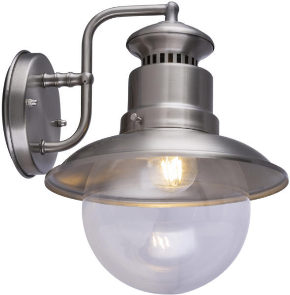 Rozsdamentes acél kültéri fali lámpa átlátszó üveg búrával, IP44-es védelemmel.