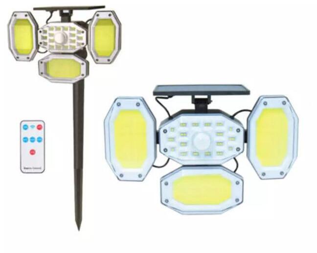 Vezeték nélküli Napelemes 4 fejű COB LED lámpa fali és leszúrható kerti lámpa mozgás és fényérzékelős - HS-V88 A vezeték nélküli napelemes 4 fejű COB LED lámpa egy sokoldalú és energiatakarékos világítási megoldás, amely ideális választás a kert, udvar, bejárat vagy akár a garázs megvilágítására. Az egyszerűen telepíthető lámpa kétféle felhasználási leh