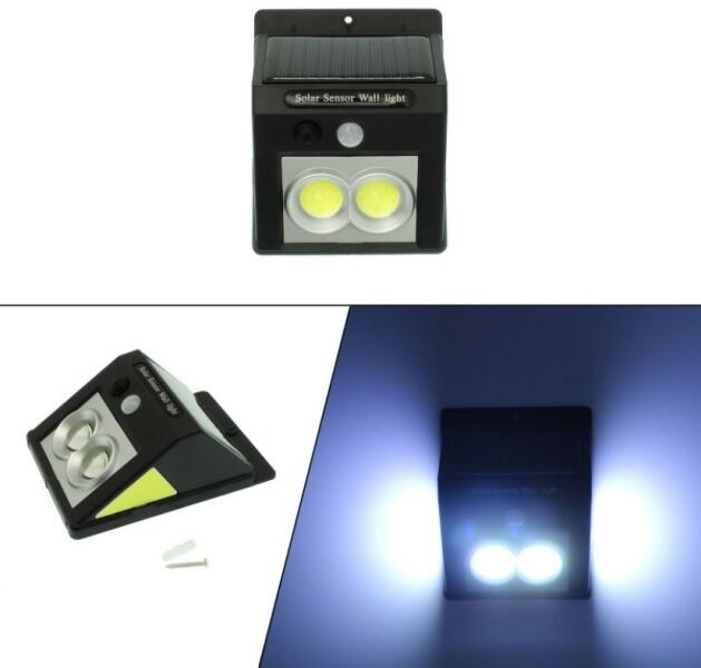 Kültéri Napelemes COB LED Lámpa Dupla Projektoros Világítással, Alkonykapcsolóval És Mozgásérzékelővel