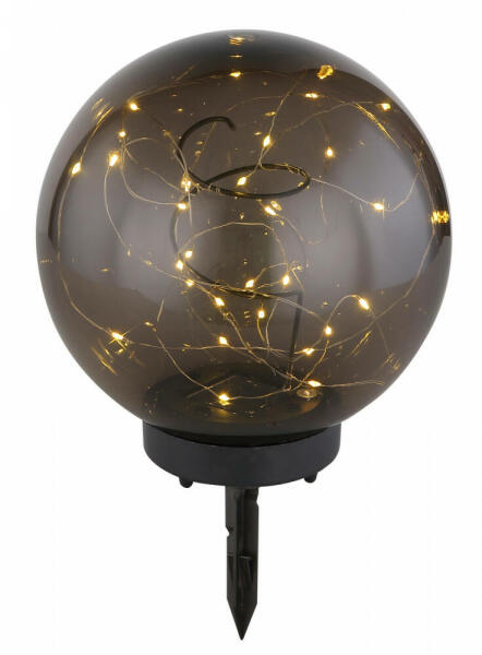 Solar leszúrható gömb füstszínű műanyag. , kapcsolóval, tartalmazza: 1 x AA Ni-Mh, tartalmazza: 30xLED 0,06W 3V. Az ár 1 darab termékre vonatkozik!