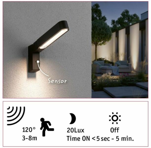 Paulmann 94549 Outdoor House ITO Motion kültéri fali lámpa, antracit, 3000K melegfehér, 450 lm, IP44