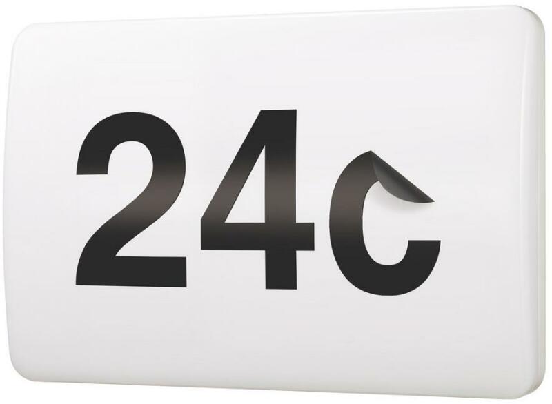 LED otthoni világítás szürkületérzékelővel. Szenzor állítható fényerősséggel a tartományban: 3-50 lx. Az alap és az opálos diffúzor polikarbonátból készült. A szám- és betűmatricákat tartalmazza.