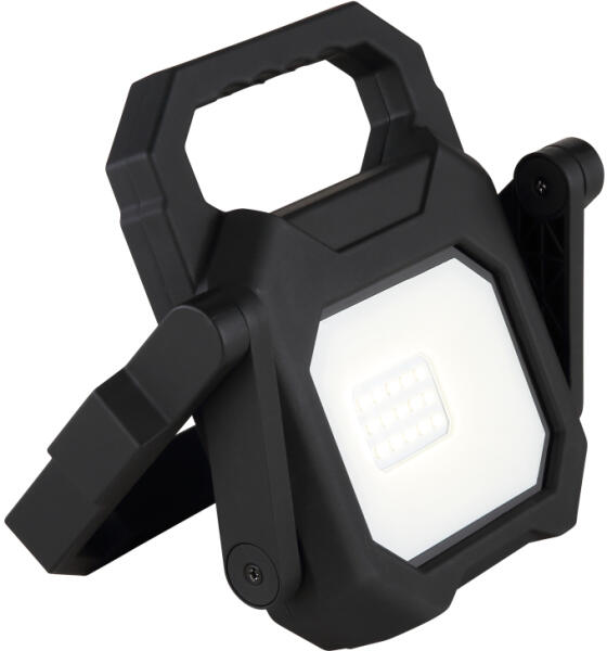 Kültéri lámpa fekete/fehér műanyag, átlátszó üveg, nyomógombos lépcsős kapcsoló, USB, mozgatható, akku:CR18650, IP54, 3 fényszint(100%/50%/25%), SOS jelzés, töltés/világítás:4,5/3 óra, HxSzxM: 183x182x30mm, LED 6W 5V, 800lm forrás, 800lm kimenet, 4000K
