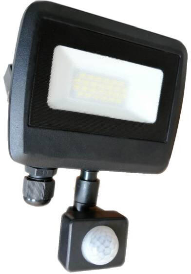 LED reflektor 20W mozgásérzékelős, sorkapoccsal, tömszelencével 4000K 1600lm IP65 120 fok SMD, lapos, fekete deLux DEL1634
