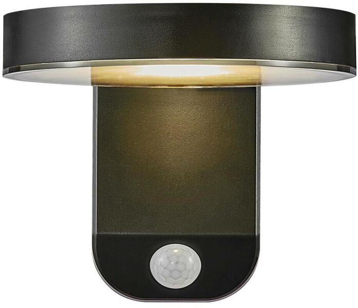 NORDLUX Rica Round kültéri fali lámpa, fekete, 3000K melegfehér, SOLAR LED, max. 5W, fényforrással, 480 lm, 15cm átmérő, 2118141003