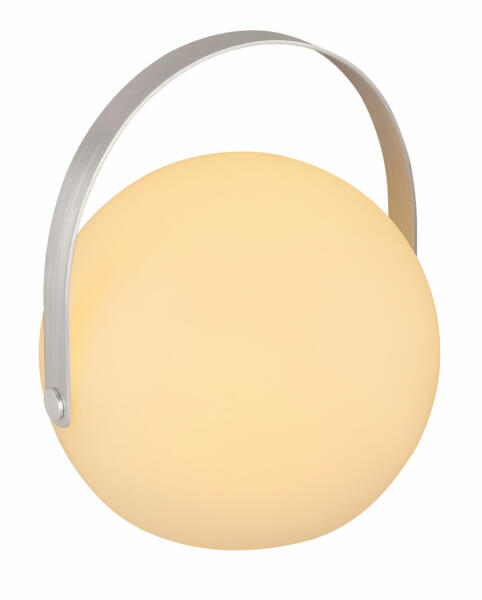 Kültéri lámpa műanyag opál gömb, fém füllel. Elemmel és Lithium akkumulátorral. Színváltós. IP44. Ø:189, H:210, inkl. RGBW LED 4,5W 5V, 92lm , 56lm, 3000K