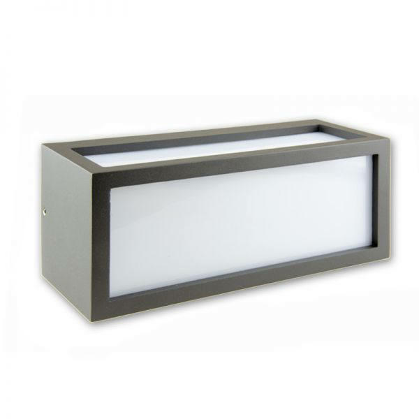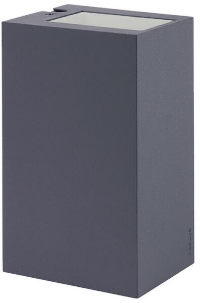 Szürke színre festett alumínium kültéri fali lámpa alul és felül üveg betétes búrával, G9-es foglalattal, IP54-es védelemmel. A lámpa felfelé és lefelé egyaránt világít.