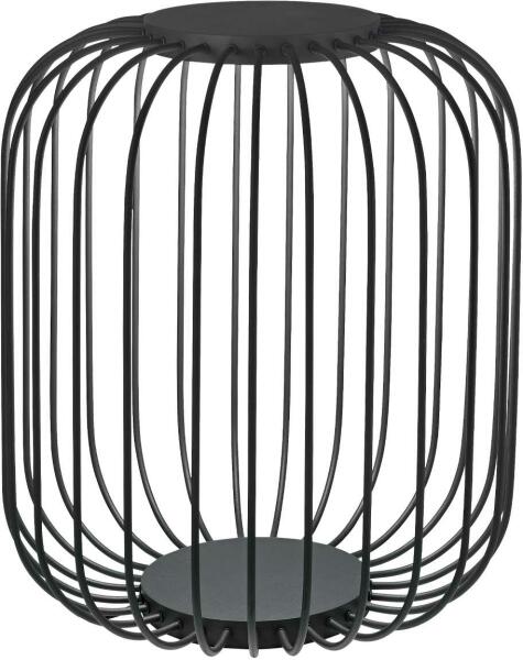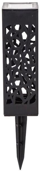 Fekete színű fém vázas kültéri álló lámpa fekete színű fém és műanyag búrával, meleg fehér színhőmérsékletű beépített LED fényforrással, IP44-es védelemmel.