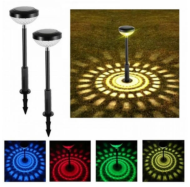 A kreatív napelemes LED RGB kerti lámpa kellemes légkört teremt, amely tökéletesen díszíti a kertet. 2 világítási mód - fehér és színes. A lámpa méretei: átmérő 11,5 cm. Magassága: 6 cm. Teljes hossza: 47 cm.
