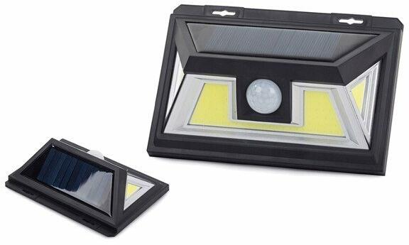 Napelemes kültéri LED COB világítás mozgásérzékelővel. COB LED-ekkel felszerelt, erős fényárammal és mozgásérzékelővel. A lámpa időjárásálló. Méretek: 10,5 x 15,5 x 5 cm.