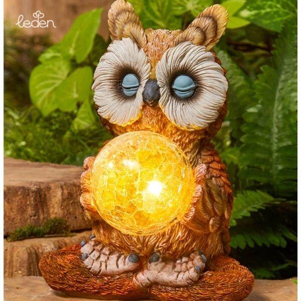 Kerti napelemes Uhhu bagoly lámpa 23 cm Ez az édes kis bagoly lámpa csak azt várja, hogy a te kertedben díszelegjen! A bagoly szárnyaival egy nagy üveggömböt tart amely esténként meleg fehér színben világít. Első használat előtt 1-2 napra rakd ki a kertbe, hogy a napelem feltöltődjön. Automatikus fényérzékelővel rendelkezik, így napnyugtakor automatikusan felkapcsolódik,