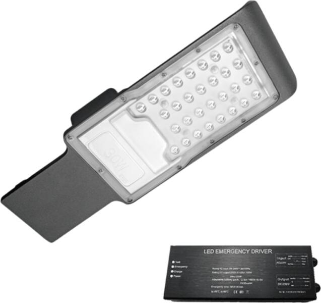 Feszültség: 180-265V AC Led típusa: SMD Teljesítmény: 100W Fényerő: 10000 Lm Sugárzási szög: 90° Méret: 160x67x420 mm Védettség: IP65 Színhőmérséklet: 5500K Lámpatest anyaga: alumínium Várható élettartam : 20 000 óra Akkumlátor: Teljesitmény: 18.5V 8800mAh Biztonsági világitási idő: 60-120 perc Méret: 290x105x50mm Védettség: IP44