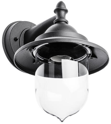 Klasszikus kerti fali lámpa, átlátszó búrával enyhe csíkozássalAjánlott forrás: 12W izzó (ESE27-12), LED izzó (E27-568). Izzót a csomagolás nem tartalmaz