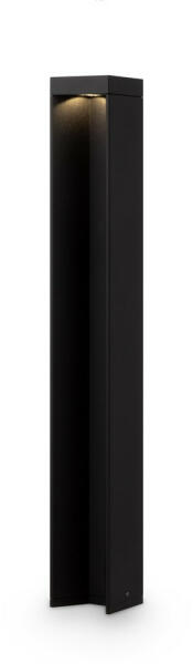 Fekete színű alumínium kültéri álló lámpa műanyag betéttel, természetes fehér színhőmérsékletű beépített LED fényforrással, IP54-es védelemmel.