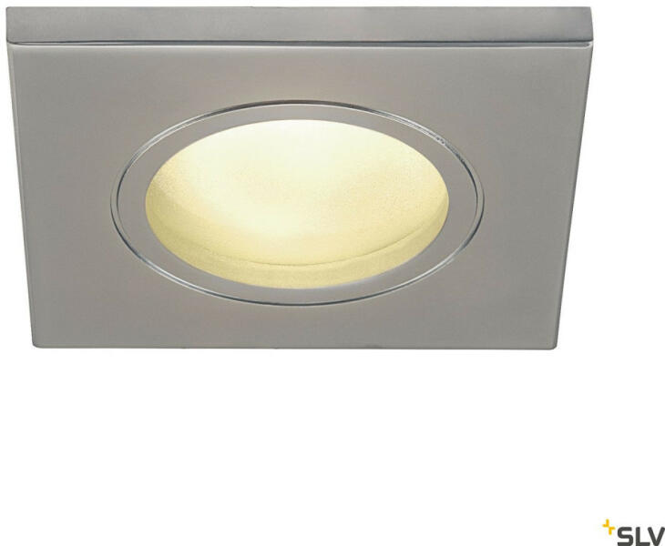 DOLIX OUT króm színű alumínium, üveg anyagból készült IP65 GU10 vízálló négyzet alakú spot lámpa | SLV 1001172