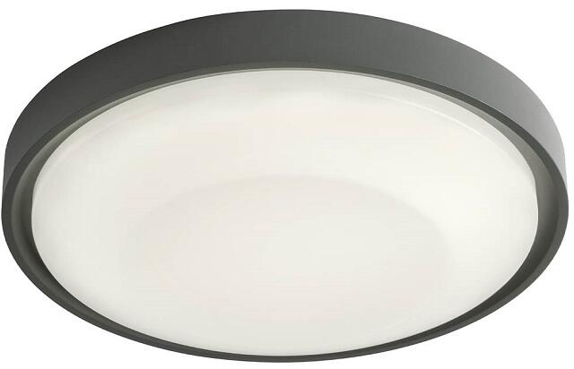 OSIRIS - Kültéri LED mennyezeti lámpa, IP65, 2820lm, átm. 32cm - Redo-90121Kültéri mennyezeti lámpa, SMD LED-el szerelve és "on board" müködtető. Elektrosztatikus mezőben festett öntött alumínium szerkezet, sötétszürke, opál polikarbonát diszperzór. VázBúraAnyaga:FémMűanyagSzín:S tét szürkeOpálTávolság a mennyezettől:6cm Szélesség, hosszúság átmérő:32cmFoglal