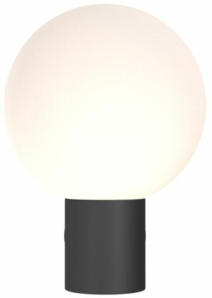 Antracit színű porszórt alumínium kültéri álló lámpa opálos polikarbonát betéttel, 10W hideg fehér fényű beépített LED fényforrással és IP65-ös védelemmel.