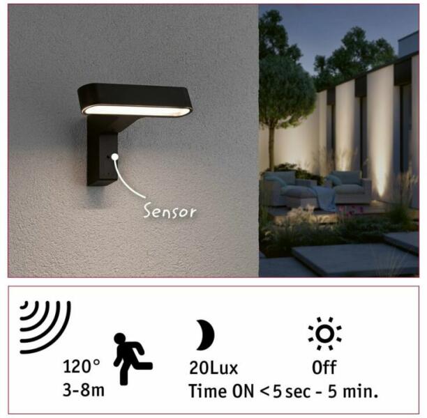 Paulmann 94548 Outdoor House ITO Motion kültéri fali lámpa, antracit, 3000K melegfehér, 450 lm, IP44