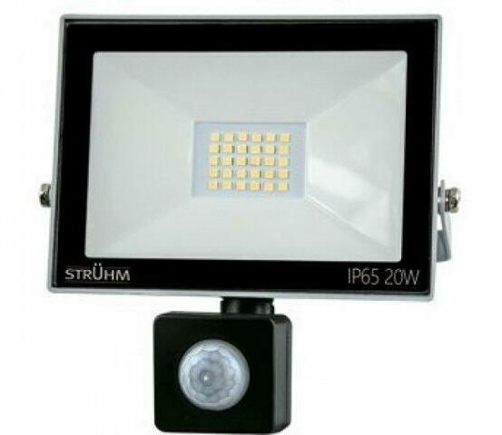 Mozgásérzékelővel felszerelt LED reflektor kocsibeállok, udvarok, kirakatok, épületek külső és belső megvilágítására. Hideg fehér színű 6500 Kelvines SMD ledekkel felszerelt LED reflektor. Kültéri használatra kiváló választás hiszen IP65-ös védettséggel rendelkezik. A reflektor 1600 Lumen fényerejű. Teljesítménye 20 Watt Gyártó / márkaStrühmLáthatósági szög1