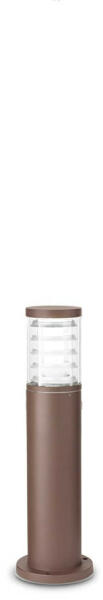 Kávé színű alumínium kültéri álló lámpa átlátszó üveg betéttel, belül alumínium gyűrű dekorral, IP44-es védelemmel, 1db E27-es foglalattal.