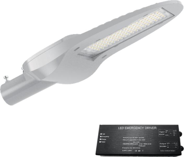 Feszültség: 180-265V AC Led típusa: Philips SMD Teljesítmény: 100W Fényerő: 12000 Lm Sugárzási szög: 90° Méret: 567x87x233 mm Védettség: IP65 Színhőmérséklet: 5500K Lámpatest anyaga: alumínium+edzett üveg lencse Tartóoszlop átmérő: 60 mm Akkumlátor: Teljesitmény: 18.5V 8800mAh Biztonsági világitási idő: 60-120 perc Méret: 290x105x50mm Védettség: IP44
