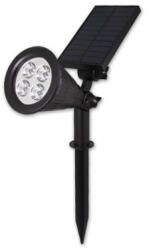 MasterLED leszúrható naplemes lámpa, a kibocsátott fény színe hideg fehér. Töltési ideje 6-8 óra teljes napsütésben. Láthatósági szög 60 ° Fényforrás típusa SMD Fényerő 120 lumen. Felhasználási terület Földbe szúrható Szín Fekete Fogyasztás 2 W. Színhőmérséklet 5500 K. Vízállósági szint IP65 Hosszúság 100 mm. Szélesség 270 mm. Magasság 340 mm. Stílus Mod