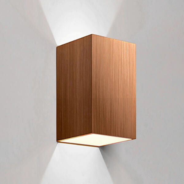 Kültéri fali világítótest a sárgaréz és a feketére festett fém kombinációjában GU10 foglalattal 2 LED izzóhoz.