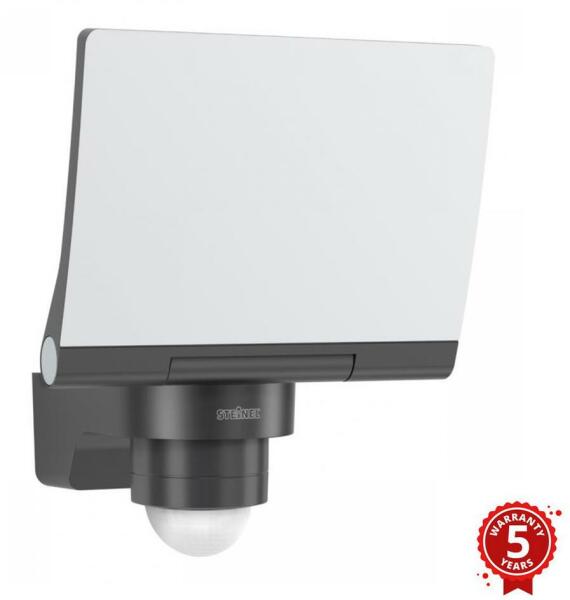 Steinel mozgásérzékelős LED reflektor XLED Pro 240 antracit Kültéri LED reflektor mozgásérzékelővel, alámászás védelemmel. Vezetékes hálózatba köthető, master-master vezérlés. Világítótest: LED 20 W, 3000 K, melegfehér Fényerő: 2124 lumen, 200W-os halogén reflektornak megfelelő fényerő Felvett teljesítmény: 24 W Érzékelési távolság: max 12 m Érzékelési tart