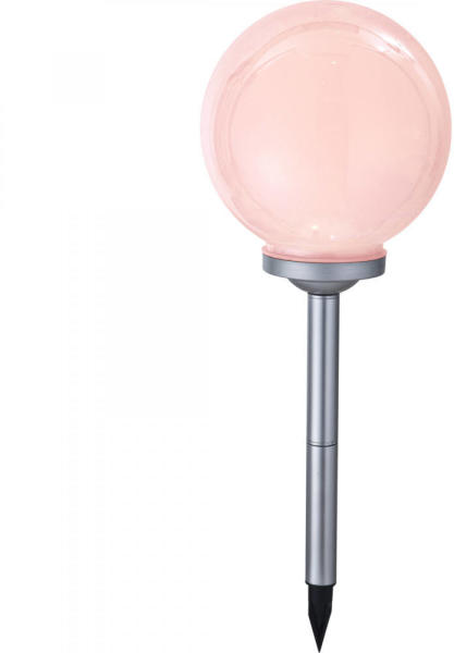 SOLAR műanyag fehér gömb, ezüst műanyag leszúróval. 1x Ni MH AA 600mAh 1,2V, Tartalmazza: 4xLED 0,06W 3,3V. Színváltós RGB LED.