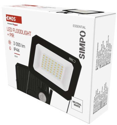 LED reflektor SIMPO PIR 30 W természetes fehér a diffúzor anyaga: üveg a felhasznált fényforrás energiaosztálya: F akkumulátor: nem AKKU világítási idő: nincs megadva áramerősség: 130 mA bevezetőkábel anyaga: gumi bevezetőkábel típusa: H05RN-F dimmelhetőség: nem élettartam: 25 000 óra értékesítési csomagolás: 1 db, doboz fényáram: 3 000 lm fényforrás: LED fényhas