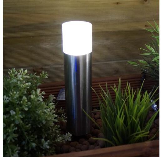 Technikai adatok: Feszültség: 12V AC/DC Anyag: rozsdamentes acél Szin: rozsdamentes acél Kábel: 1m. SPT-1W IP védettség: IP44 Méretek: Hosssz: 48mm Szélesség: 48mm Magasság: 200mm Tartozékok: tranzformátor: nem, szettnél igen szerelőtalp: nem szerelőkulcs: nem csavarok és csatlakozók: igen leszúró tüske: igen