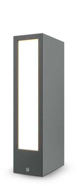 Grafit színű, minimalista stílusú fém kültéri álló lámpa műanyag betéttel, meleg fehér színhőmérsékletű beépített LED fényforrással, IP65-ös védelemmel.