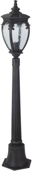 Sötét, antik bronz színű alumínium vázas kültéri álló lámpa átlátszó, hullámos üveg betétes búrával, 1db E27-es foglalattal, IP44-es védelemmel. A lámpát fényforrás nélkül szállítjuk.
