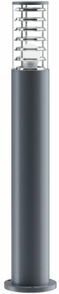Szürke színű alumínium vázas kültéri álló lámpa átlátszó műanyag búrával, belső fém gyűrű dekorral, 1db E27-es foglalattal, IP54-es védelemmel. A lámpát fényforrás nélkül szállítjuk.