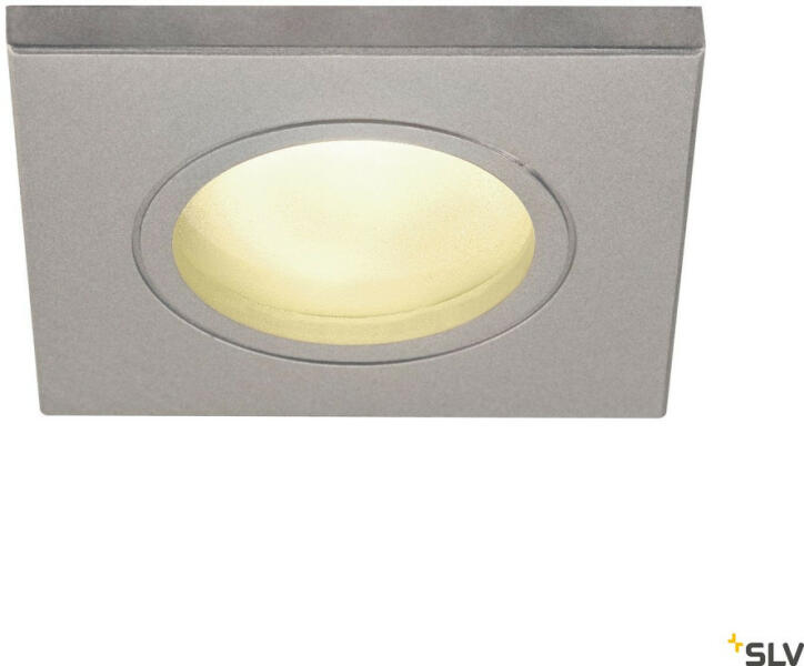 DOLIX OUT szürke-átlátszó színű alumínium, üveg anyagból készült IP65 GU10 vízálló négyzet alakú spot lámpa | SLV 1001171