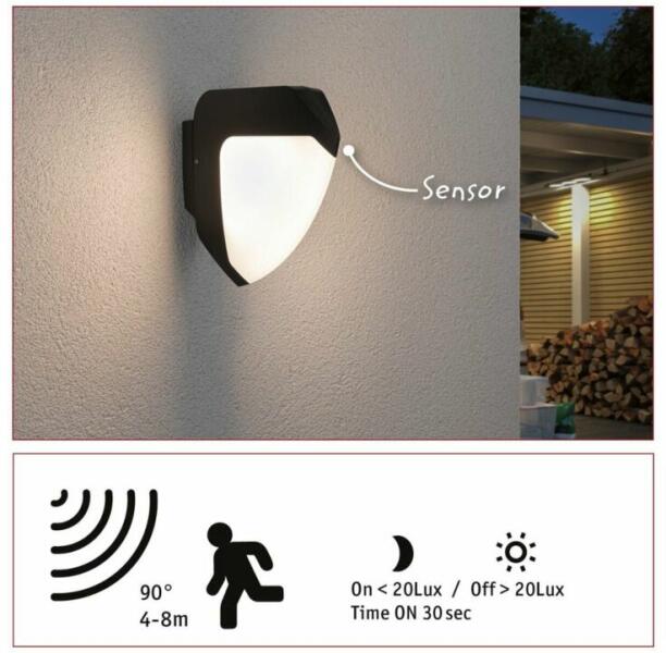 Paulmann 94517 Outdoor Ikosea kültéri fali lámpa, antracit, 3000K melegfehér, 350 lm, IP44