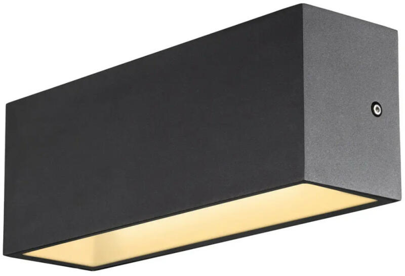 SITRA M WL UP-DOWN LED antracit IP44 24W 3000/4000K kültéri fali lámpa angol nyelvű gyátrói leírása: SITRA is the striking, contemporary light family from SLV, which allows diverse applications in outdoor areas. The anthracite coloured SITRA CUBE L UP/DOWN wall light also fits in perfectly with any architectural style. The indirect lighting style adds interest to any façade. And thanks to