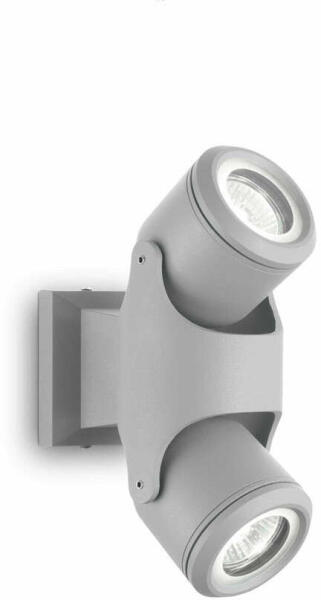 Szürke színre festett alumínium mennyezeti lámpa állítható fém fejekkel, üveg betéttel, GU10-es foglalattal, IP44-es védelemmel.