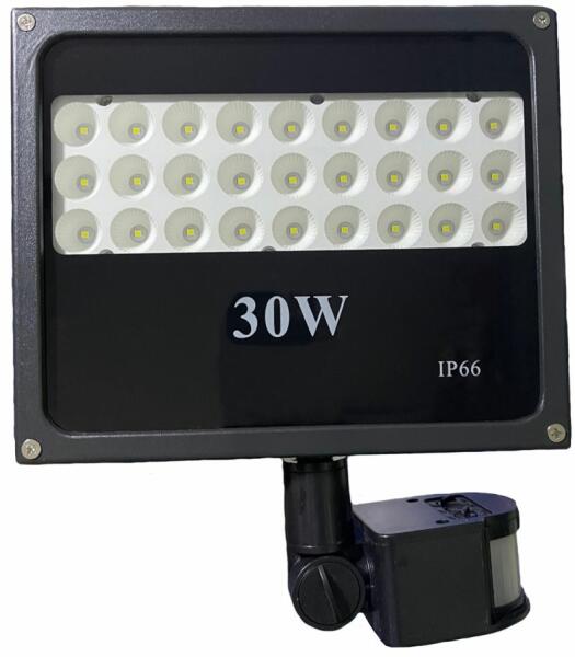 30W SMD LED PIR mozgásérzékelős Speciális reflektor fényvető hideg fehér SLIM Kültéri spotlámpa IP66 - L - 30W 300W- 2400 Lumen- Energy A- SMD Led- PIR mozgásérzékelő- IP66- Élettartam 50.000- 180-ban forgatható rögzítő konzol
