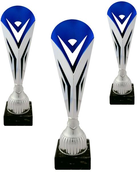 Darts serleg, márvány talpon, ezüst, kék színben, tetővel, dartstáblával, 42,5 cm magas Márványtalp méretei: 65x65x20 mm Felső rész magassága: 425 mm A trófea teljes magassága: 445 mmAnyaga: márvány talpon kék és ezüst színű műanyag. GARKO