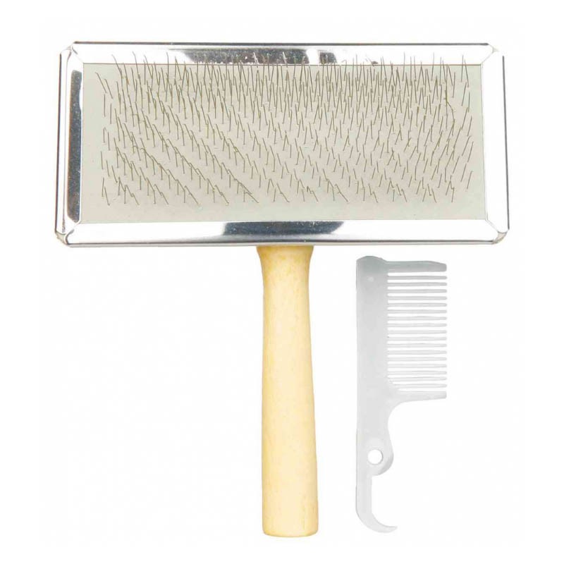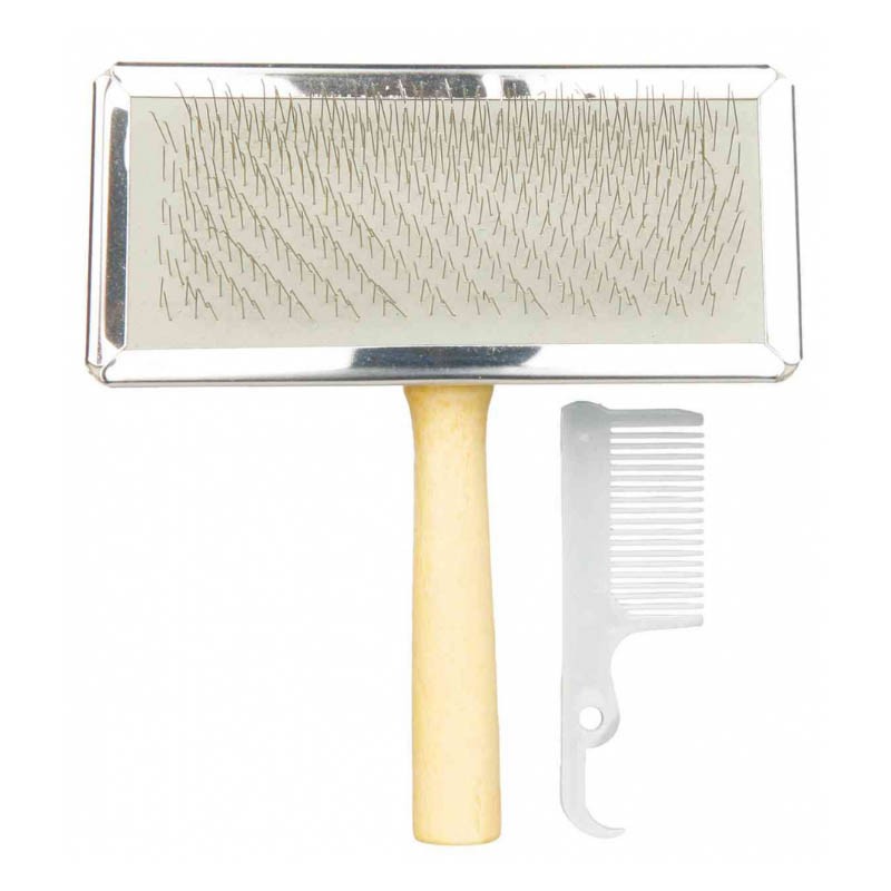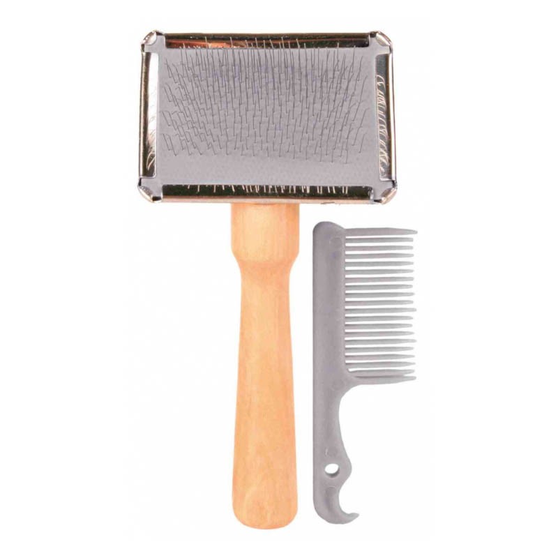 Trixie Puha fémszálas tükrös kefe fésűvel Közepes, fanyelű kefe kis tisztítófésűvel, krómozott kefe-fejjel. Elsősorban kis testű kutyáknak. Aljszőrzet és fedőszőrzet ápolására egyaránt alkalmas. Különböző színekben kapható. Ajánlott szőrtípusok: Rövidszőrzet, hosszú szőrzet, göndör v. hullámos szőrzet, drót-, illetve szálkás szőrzet ápolására ajánlo
