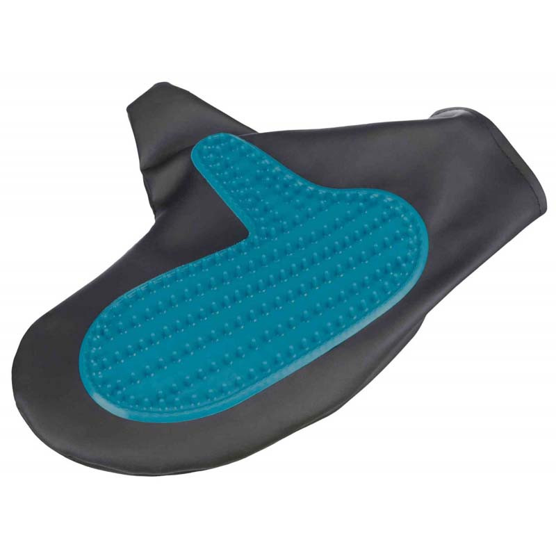 Trixie 5 ujjas Gumírozott szőrápoló masszazs kesztyű – Kefe kesztyű kutyáknak amivel kisimíthatjuk a szőrzetet, és eltávolíthatjuk az elhalt szőrszálakat. A gumifelületű masszázs betét fényesíti a bundát és kényezteti kedvencét! Ajánlott szőrtípusok: Minden szőrtípusra ajánlott Trixie 5 ujjas Gumírozott szőrápoló masszazs kesztyű ? Kefe kesztyű kutyáknak amiv