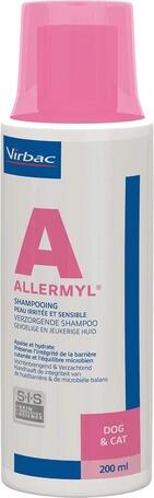 Termék részletek200ml A Virbac Allermyl sampon egy irritációt csökkentő, immunmoduláns, antiszeptikus készítmény. Az Allermyl sampon egyedülálló, mivel szinergista kombinációban tartalmaz nyugtató hatású immunmoduláns anyagot, esszenciális zsírsavakat, és antiszeptikus anyagokat; illetve a hatóanyagokat a megfelelõ gyógyszerformában tartalmazza, az Allerderm habzó mikroemulzióban. Ez az