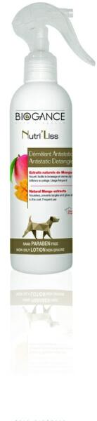 Termék részletekA Nutri’ Liss szőrbontó oldat olajmentes és antisztatikus szőrbontó folyadék természetes mangó kivonattal, mely táplálja, kondicionálja a bundát, valamint megelőzi a szőrcsomók kialakulását. Ph semleges és hypoallergén. A készítmény összetétele: Tisztított víz, Propilén-glikol, centrimonium-klorid, mangó, Peg 20 szorbitan-monolaurát, amodimetikon, parfüm, dimetikon