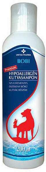 Bobi hipoallergén kutyasampon 200mlA kíméletesen hatékony tisztító hatás mellett, hidratálja az érzékeny bőrt, a gyógynövény kivonatok és a hidrolizált fehérje védő, dezodoráló, nyugtató hatással rendelkezik. Bobi hipoallergén kutyasampon 200ml A kíméletesen hatékony tisztító hatás mellett, hidratálja az érzékeny bőrt, a gyógynövény kivonatok és a hidrolizált