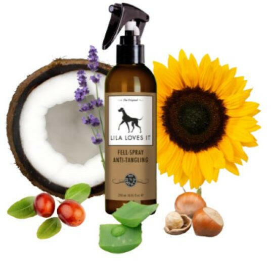 Bio szőrbontó spray kutyák számára, mely segít a könnyebb fésülésért és selymes bunda megtartásáért bio aloe verával, bio kókuszolajjal, bio jojoba olajjal, bio makadámdió olajjal. A Lila Loves It prémium Szőrbontó spray használatával a bio aloe vera gél, bio kókuszolaj, bio jojoba olaj és bio makadámdió olaj tartalmának köszönhetően a kutya bundája könnyebben f