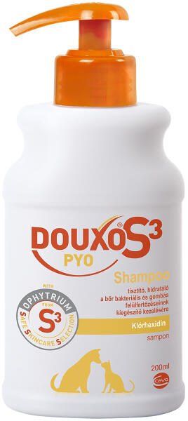 Eurowet Hexoderm sampon 200ml - Termékleírás Bőrgyógyászati sampon kutyák és macskák számára a bőr mikroflórájának szabályozására. A Hexoderm egy állatgyógyászati dermokozmetikum, amely szabályozza a bőr mikroflóráját, stabilizálja a pH-értékét és megakadályozza a kiszáradást, mivel vékony zsír-fehérje réteget hagy maga után. A folyadékban található enyhe